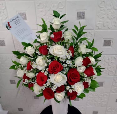 Papan bunga untuk ungkapan simpati, pernikahan, dan perayaan lainnya.